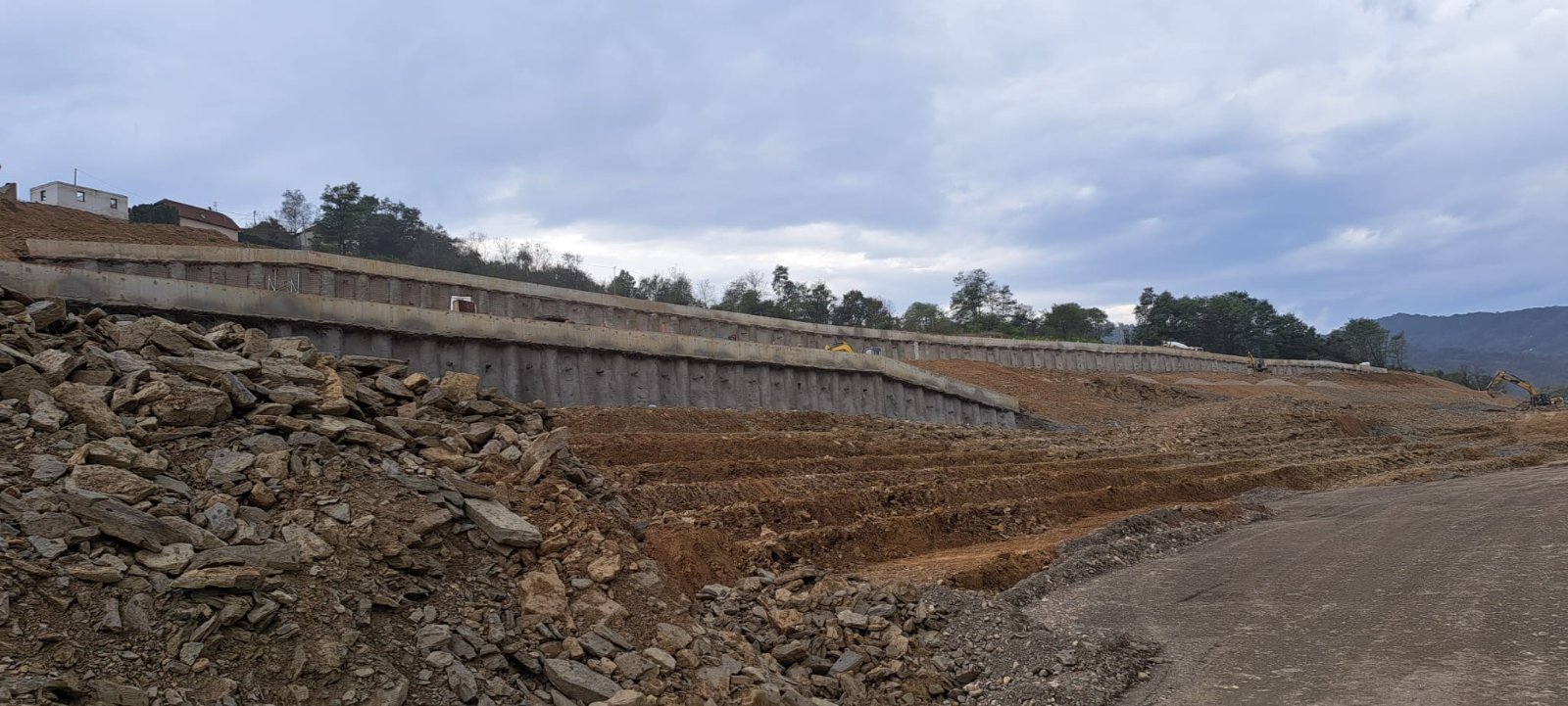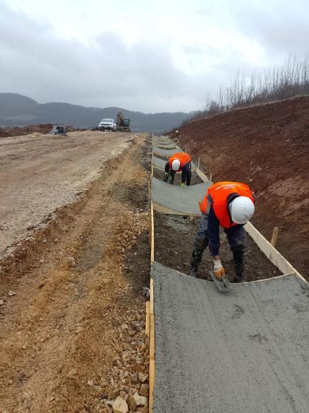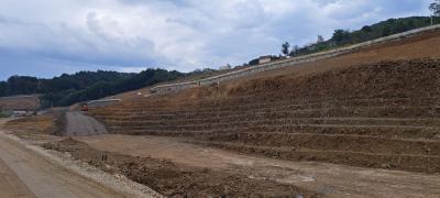 Urađeni šljunčani klinovi iza krajnjih stubova i kegle na mostu M26 i nadvožnjaku na Petlji Lučani.